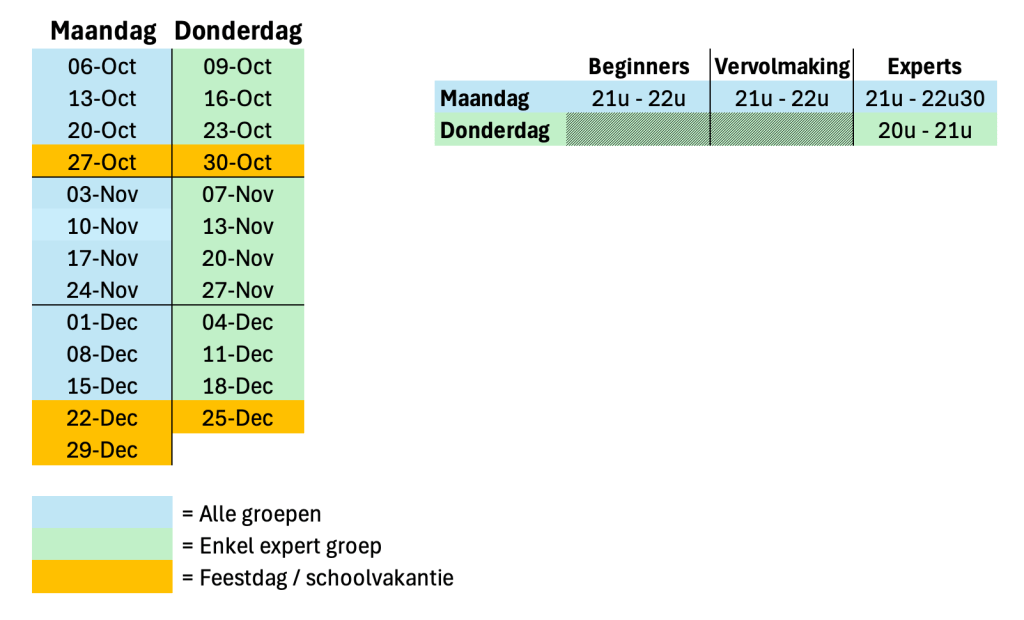 Training Kalender ’25-’26 Share this: Click to share on X (Opens in new window) X Click to share on Facebook (Opens in new window) Facebook Like Loading...